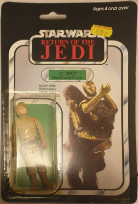 of Luke Bespin on a C-3PO (Removable Limbs) card, and again, this has a price sticker.
